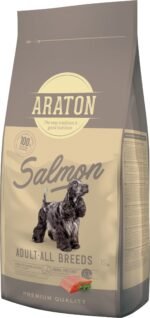 Araton Adult With Salmon & Rice – visavertis sausas maistas su lašiša ir ryžiais, skirtas visų veislių suaugusiems šunims. Ėdalas gaminamas iš aukštos kokybės žaliavų. Sudėtyje yra visų būtinų maistinių medžiagų ir vitaminų, kurie gali palaikyti gerą šuns sveikatos būklę.