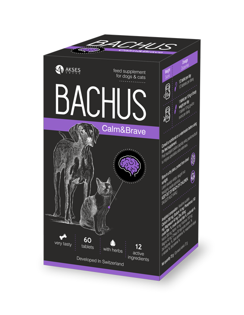 Nomierinoša un stabilizējoša BACHUS Mierīgs un drosmīgs Efekts tiek panākts, apvienojot efektīvas augu ekstraktu, minerālvielu, vitamīnu un citu aktīvo vielu koncentrācijas, kas nepieciešamas mājdzīvnieka nervu sistēmas normālai darbībai. Satur lielu devu L-triptofāns, aminoskābe, kas ir svarīga serotonīna (laimes hormona) sintēzei.