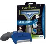 FURminator® kopšanas ķemme, regulāri lietojot, samazina apmatojuma izkrišanu līdz pat 90%. FURminator® zemapmatojuma atdalīšanas rīks lieliem suņiem (suņiem līdz 25 kg) ir īpaši izstrādāta ķemme, lai droši un viegli noņemtu izkritušos apmatojumu un pavilnu, nebojājot apmatojumu un neiegriežot ādu.* Izliektā mala slīd pāri suņa ādai, novērš aizķeršanos aiz malām un pielāgojas jūsu mājdzīvnieka dabiskajai uzbūvei un formai ērtai lietošanai. Ergonomiskais rokturis atvieglo lietošanu, savukārt FUrejector® poga viegli atbrīvo apmatojumu.