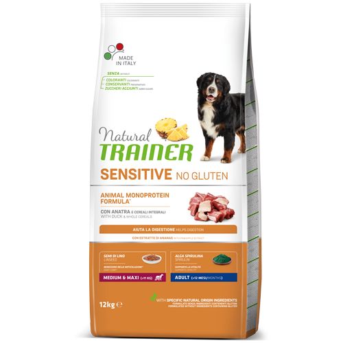 Strāvas saites: "Sākotnēji ieviesiet Natural Trainer Sensitive No Gluten sauso barību pakāpeniski. Norādītais daudzums ir tikai vadlīnija un jāaprēķina, ņemot vērā suņa fizisko stāvokli, aktivitātes līmeni un laika apstākļus. Lai uzturētu labu fizisko stāvokli, viņam jābūt aktīvam katru dienu. Sauso barību var kombinēt ar atbilstošo Natural Trainer Sensitive No Gluten mitro barību, pamatojoties uz dienas devu. Vienmēr pievienojiet svaigu un tīru ūdeni bļodā blakus barībai. Uzglabāt vēsā, sausā vietā. Vienmēr aizveriet iepakojumu. *Šis attēls ir tikai ilustratīvs. Var izmantot svaigas, saldētas, dehidrētas vai sausā ekstrakta sastāvdaļas.*Satur tikai vienu dzīvnieku olbaltumvielu avotu. Var saturēt citu dzīvnieku olbaltumvielu pēdas."