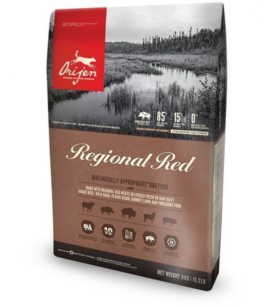 Nodrošiniet savam mājdzīvniekam visas nepieciešamās uzturvielas ar ORIJEN. Suņi ir gaļēdāji, tāpēc tiem nepieciešama bioloģiski atbilstoša diēta, kas bagāta ar dažādām dzīvnieku izcelsmes sastāvdaļām. ORIJEN Regional Red ir ražota no 85% % kvalitatīvu dzīvnieku izcelsmes sastāvdaļu, tostarp jēlas liellopa gaļas, brieža gaļas, bizona gaļas, jēra gaļas un cūkgaļas. Tajā tiek izmantoti arī orgāni un kauli – WholePrey pieeja. Rezultāts ir nepārspējama recepte jūsu mājdzīvniekam.