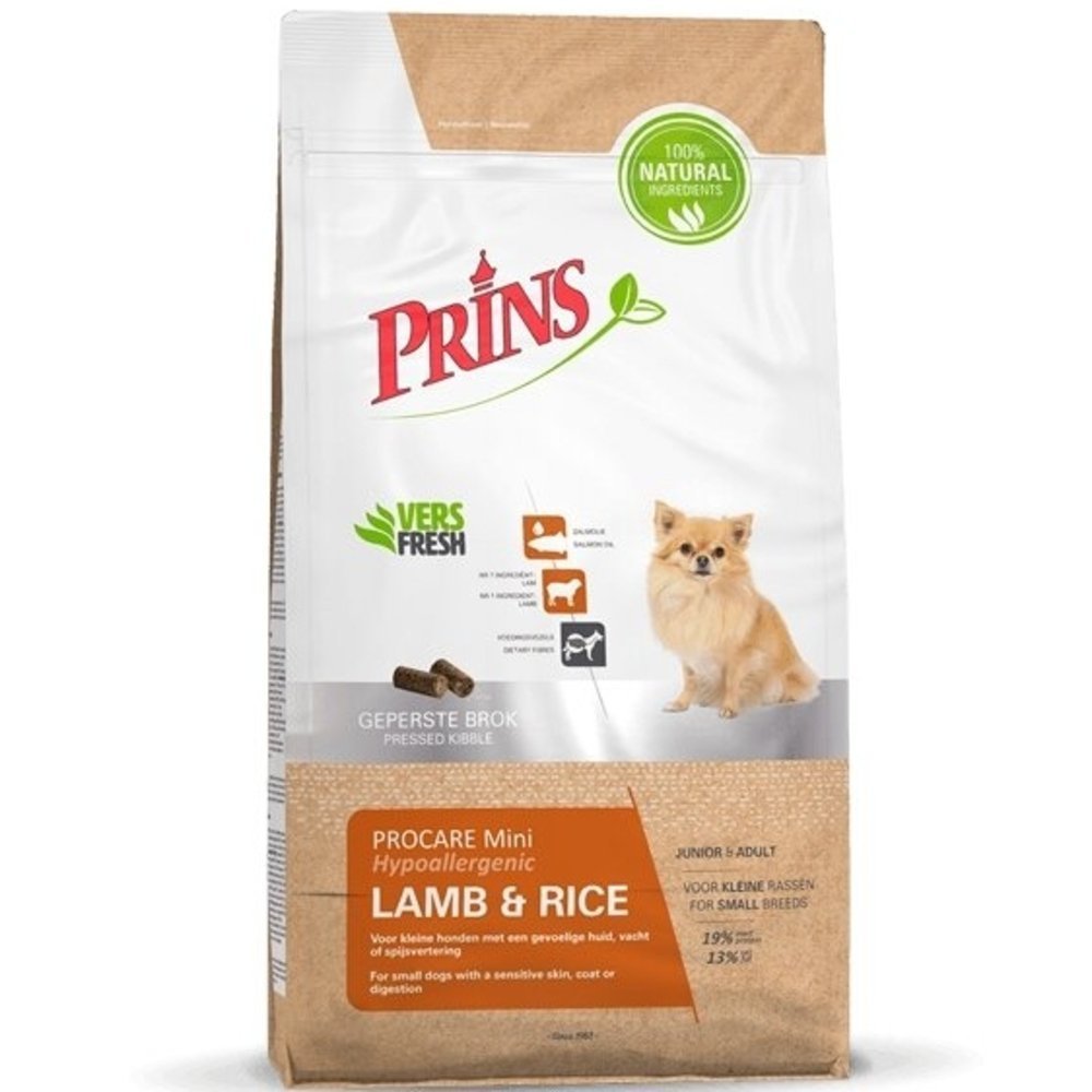 Prins ProCare Mini Lamb & Rice hipoalerģiska sausā barība pieaugušiem mazo šķirņu suņiem ar jutīgu ādu un kažoku. Īpašā barības formula un inovatīvā aukstās presēšanas ražošanas metode nodrošina jūsu mājdzīvnieka lielisku labsajūtu. Šajā suņu barībā tiek izmantots tikai viena veida proteīns (jēra gaļa), lai izvairītos no iespējamām alerģiskām reakcijām uz barību.