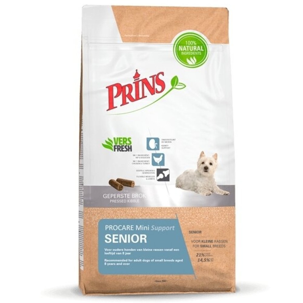 Prins ProCare Mini Senior Support sausā barība mazo šķirņu senioriem suņiem ar 100% dabīgām sastāvdaļām, lai uzturētu jūsu senioru nevainojamā veselībā.