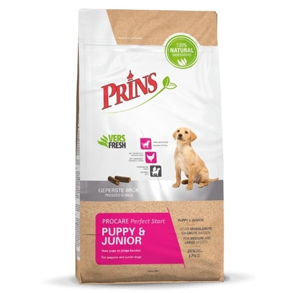 100% dabīgas sastāvdaļas. Prins ProCare Puppy Junior Perfect Start ir presēta sausā barība kucēniem un jauniem suņiem, kas ražota, izmantojot modernas tehnoloģijas un veterinārārstu daudzu gadu pieredzi. Rezultāts ir augstākās kvalitātes barība jūsu augošajam ģimenes loceklim.