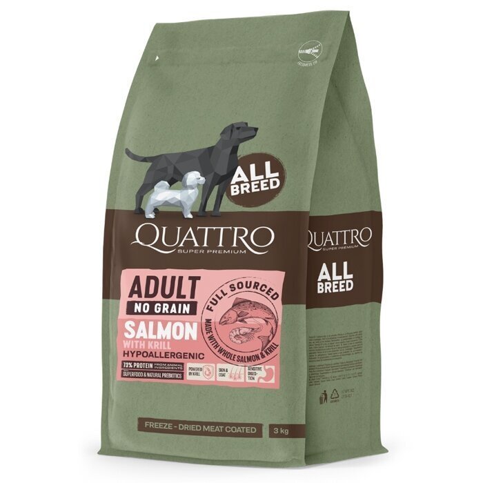 Quattro Adult All Breed With Salmon suņu barība 12 kg